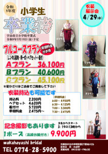 2026.04.10お知らせ 令和8年度小学生卒業式衣装展示会 令和8年度小学校卒業式衣装展示会 日時 令和8年4月29日(水)10:00~ 場所 わかはやしブライダル SHAREシェアする [addtoany] 前ページ 一覧へ戻る Category お知らせ お知らせ 衣装 New Article 2026.04.10 令和8年度小学生卒業式衣装展示会 2026.04.10 小学生卒業式男児着物袴一覧 2026.01.17 令和8年度振袖展示会開催のお知らせ Archive 2026年4月 2026年1月 2025年7月 2025年5月 2025年4月 2025年3月 2025年1月 2024年9月 2024年6月 2024年5月 2024年4月 2024年1月 2023年8月 2023年7月 2023年6月 2023年1月 2022年8月 2022年7月 2022年1月 2021年9月 2021年8月 2021年7月 2021年6月 2020年12月 2020年9月 2020年8月